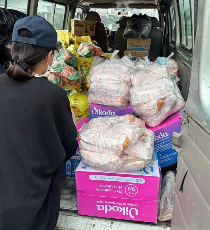 Bánh mì được để cẩn thận trên xe chở về rốn lũ Đông Hòa, Hòa Thịnh, Hòa Xuân hỗ trợ bà con – Ảnh: NVCC