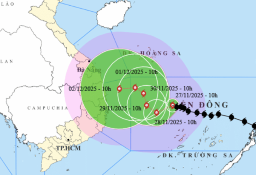 Hồi 16h ngày 26/11/2025, vị trí tâm bão số 15 vào khoảng 12,5 độ vĩ bắc, 116,1 độ kinh đông, cách đảo Song Tử Tây khoảng 230km, sức gió mạnh nhất vùng gần tâm bão mạnh cấp 10, giật cấp 13, trong 24h tới bão số 15 di chuyển rất nhanh với tốc độ khoảng 20km/h.