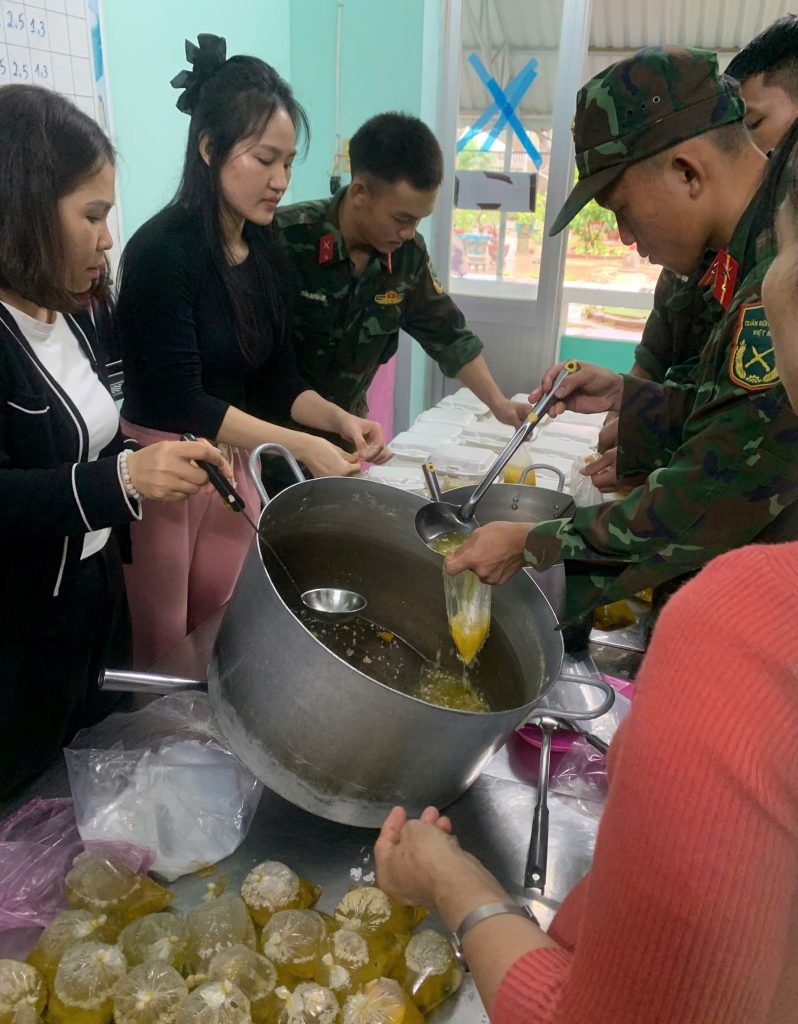 Tại xã Phú Hòa 1 (Đắk Lắk), Trường Mầm non Phú Hòa 1 được Trung đoàn 584 (Bộ CHQS tỉnh Đắk Lắk) chọn làm điểm lập bếp dã chiến.