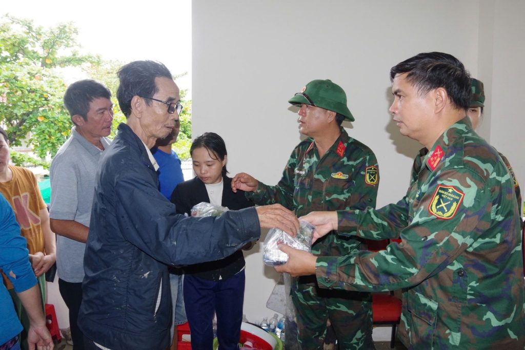 Tại phường Tây Nha Trang, Sư đoàn BB305 cũng tổ chức nấu mỗi ngày 200 suất cơm nóng, gửi đến bà con những hộ dân đang được bố trí tạm trú tập trung tại Trường THCS Vĩnh Hiệp.
