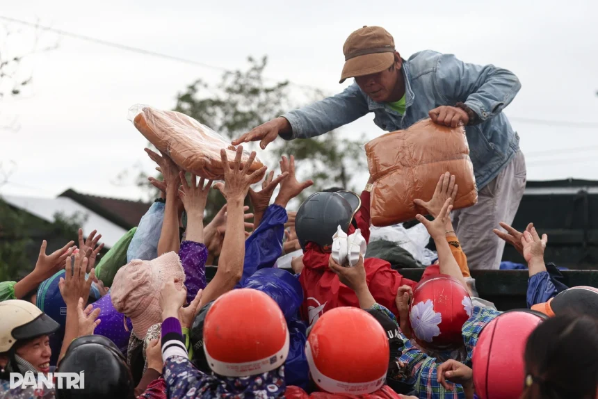 Khi nước lũ rút, nhiều đoàn cứu trợ từ khắp cả nước đã đổ về xã Hòa Thịnh (Phú Yên cũ) để hỗ trợ người dân (Ảnh: Nam Anh).