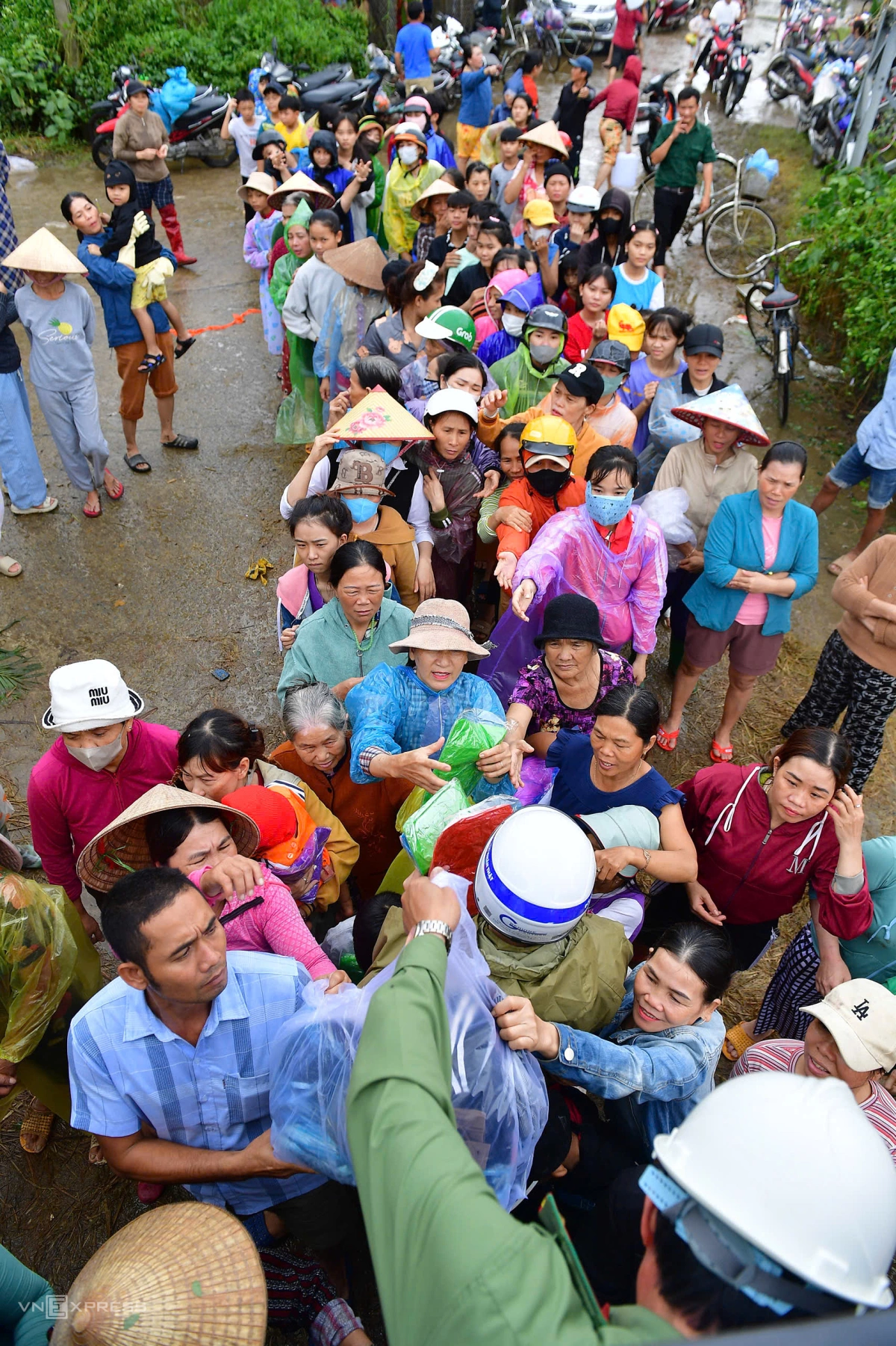 Đông nghịt người dân ở thôn Mỹ Điền nhận hàng cứu trợ.