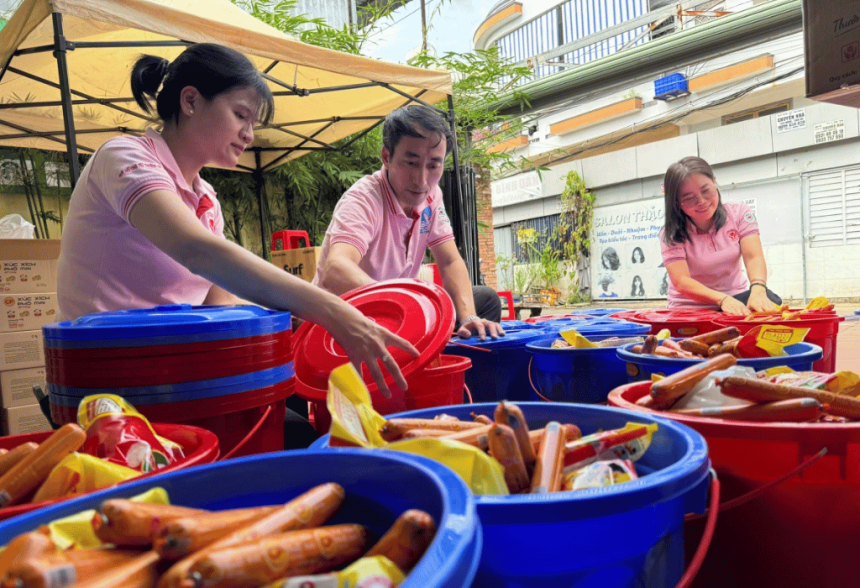 Không khí tại Nhà văn hóa khu phố 3A, phường Trảng Dài, trở nên tấp nập, hệt như những ngày giáp Tết. Mỗi người một việc, từ người lớn đến trẻ nhỏ, từ tiểu thương đến công nhân, tất cả đều chung tay gói những chiếc bánh mang nặng tình yêu thương và sẻ chia.