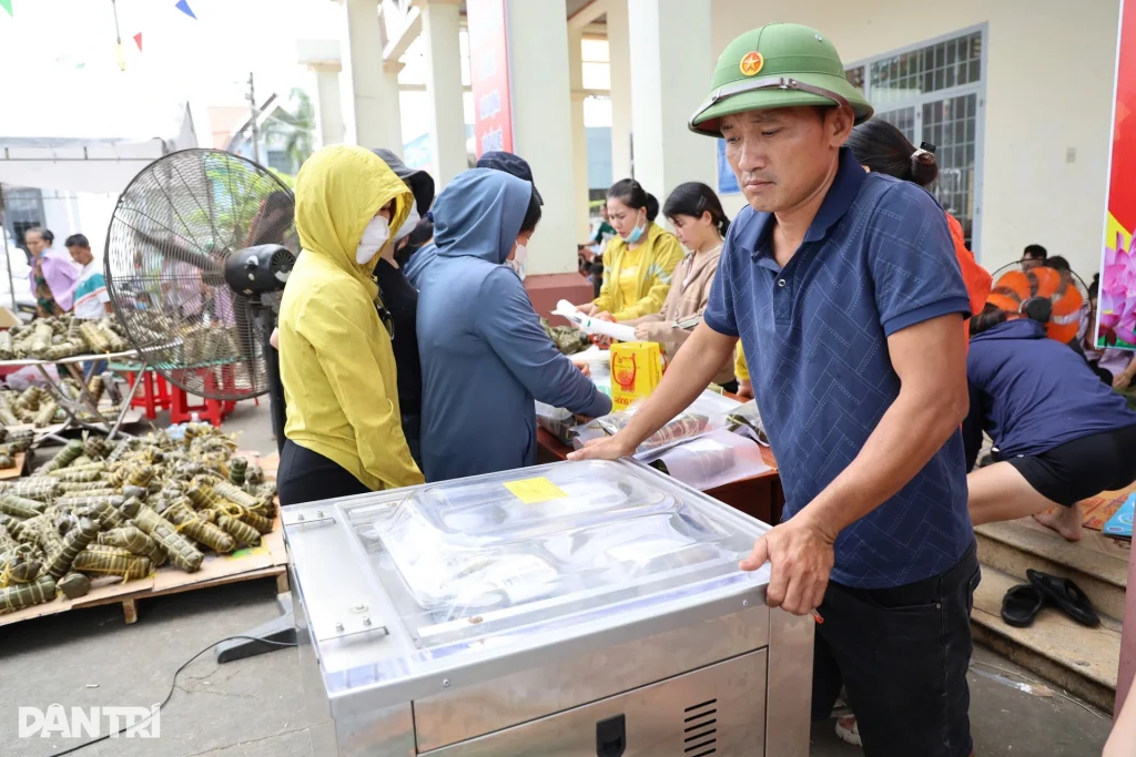 Bánh chưng, bánh tét sau khi nấu xong được để nguội, bỏ túi và hút chân không để đảm bảo chất lượng, thời gian lưu trữ được lâu khi trao tặng cho người dân vùng lũ.